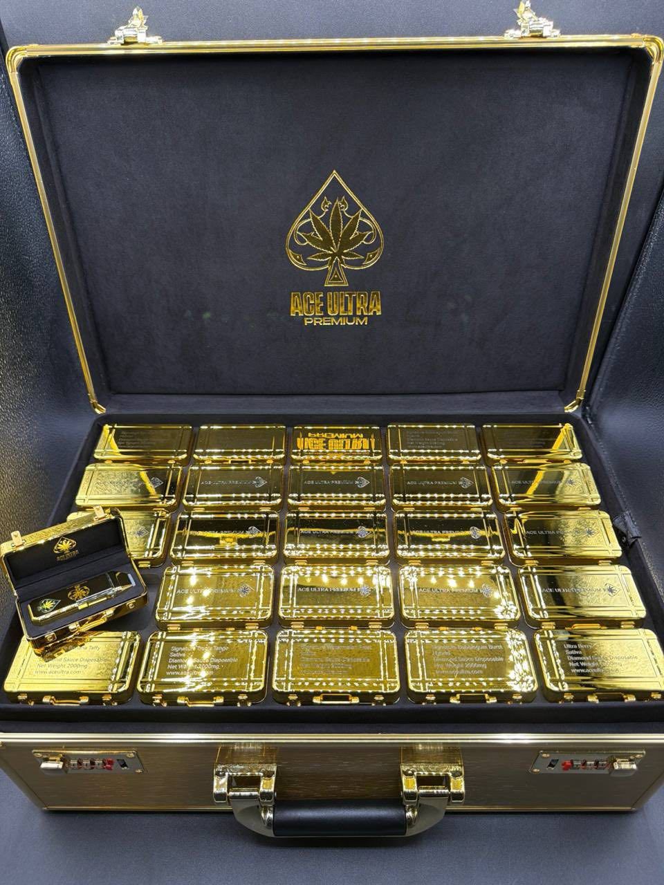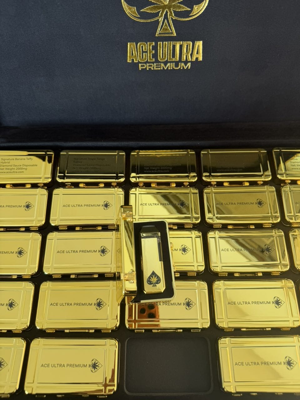 The Ace Ultra Premium New Gold 2G disposable vape represents the convergence of luxury design, cutting-edge technology, and premium cannabis concentrate. From its mirror-polished gold finish to its smart carry case, Ace is made for smokers who demand the best. With its advanced quad-core coil system, leak-resistant construction, rechargeable battery, and 2-gram capacity of Diamond Sauce extract, this device delivers an exceptional vaping experience that justifies its premium positioning.